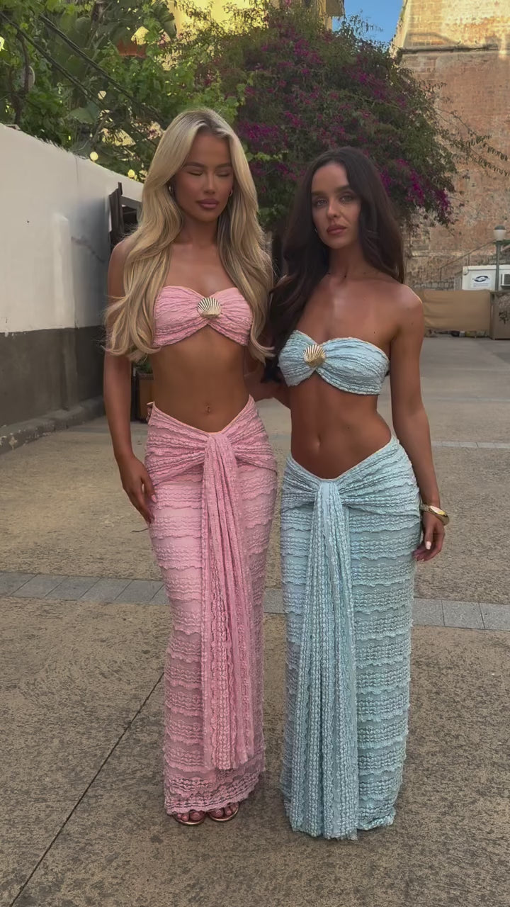 סט נועז ומהמם הכולל טופ סטרפלס קצר עם קשירה קדמית מדויקת וחצאית ליי̆ עם גזרה מעט א-סימטרית וקשירה מותאמת. בד אלסטי נעים שמחמיא לגוף ויושב מדויק על הגוף – מתאים לבילוי קייצי, חופשה או אירוע בלתי נשכח.